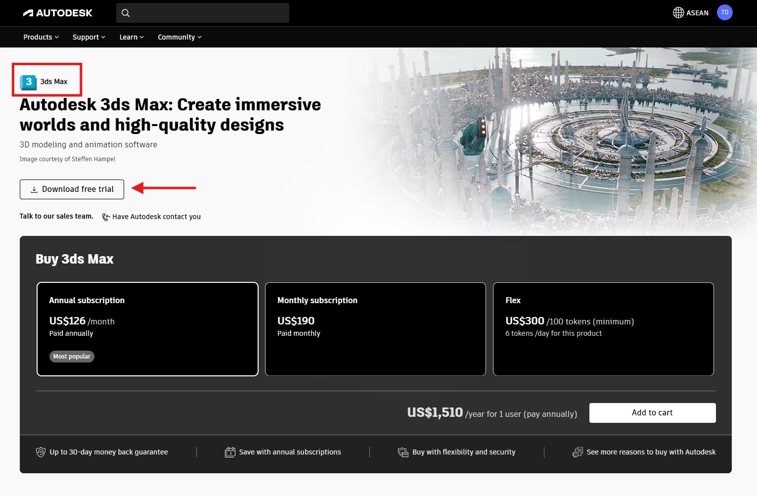 - Tìm 3ds Max. Chọn phiên bản 2026 (lưu ý chọn bản cập nhật mới nhất nếu có, ví dụ 2026.3).