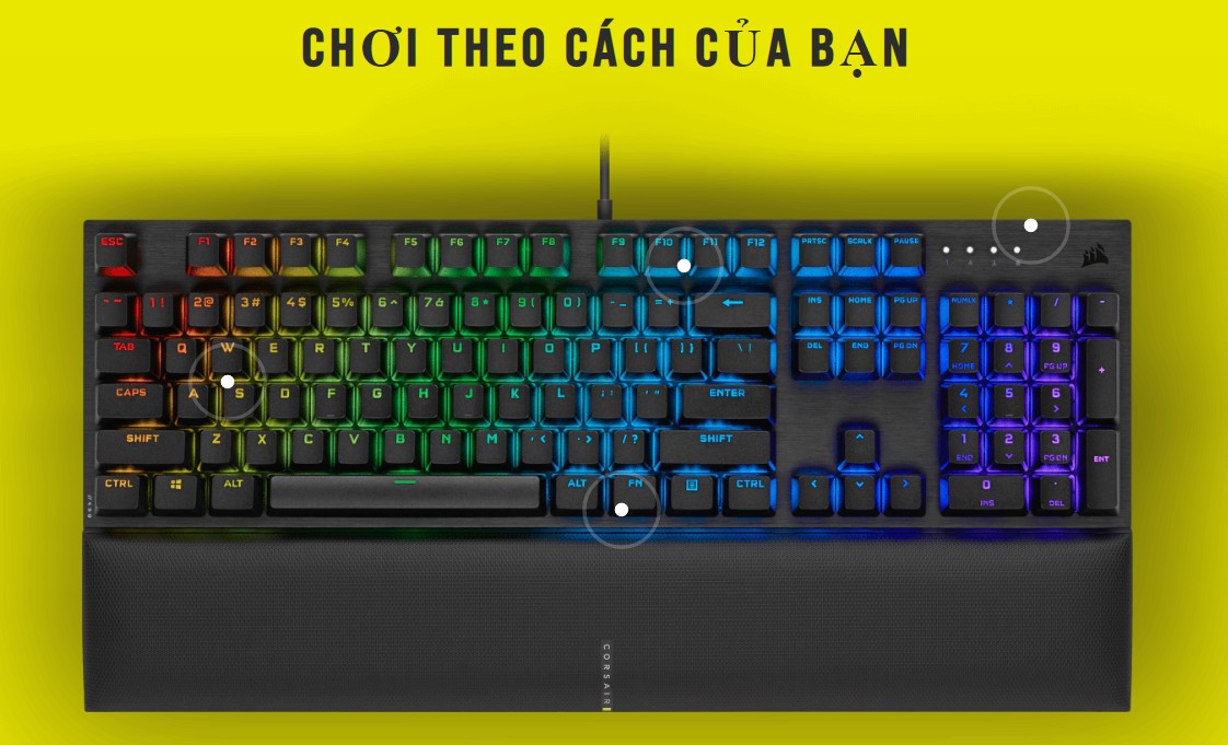 Corsair K60 RGB PRO SE CHERRY VIOLA Black sử dụng 100% Switches CHERRY VIOLA.