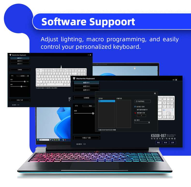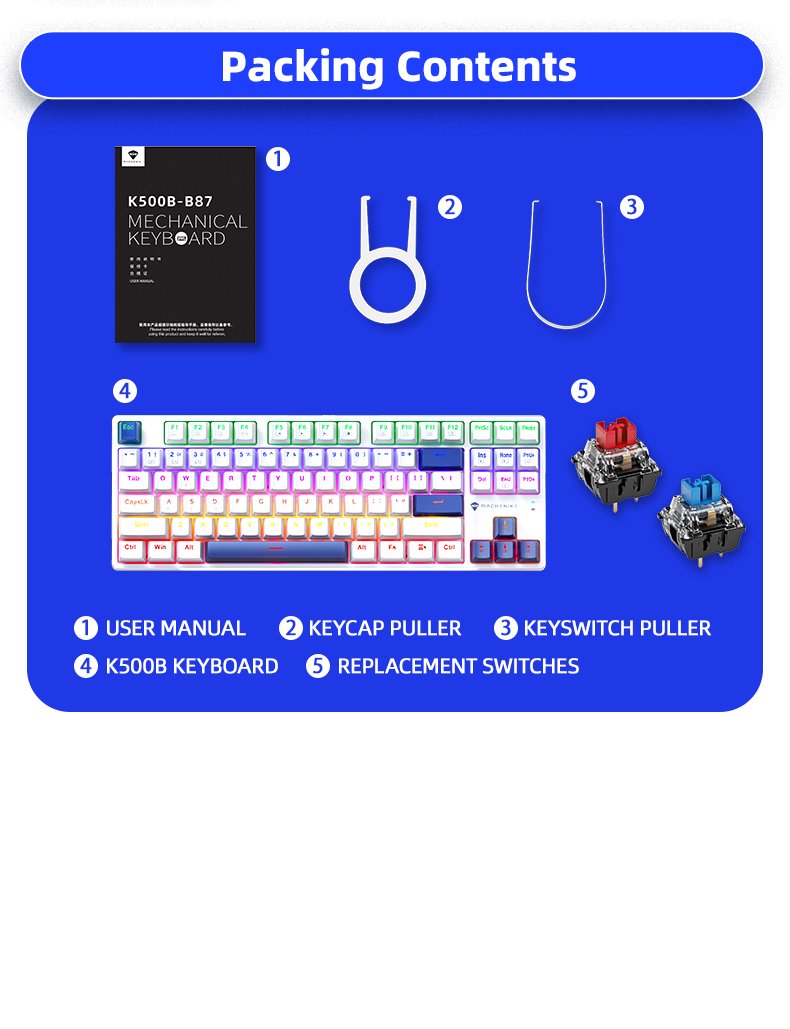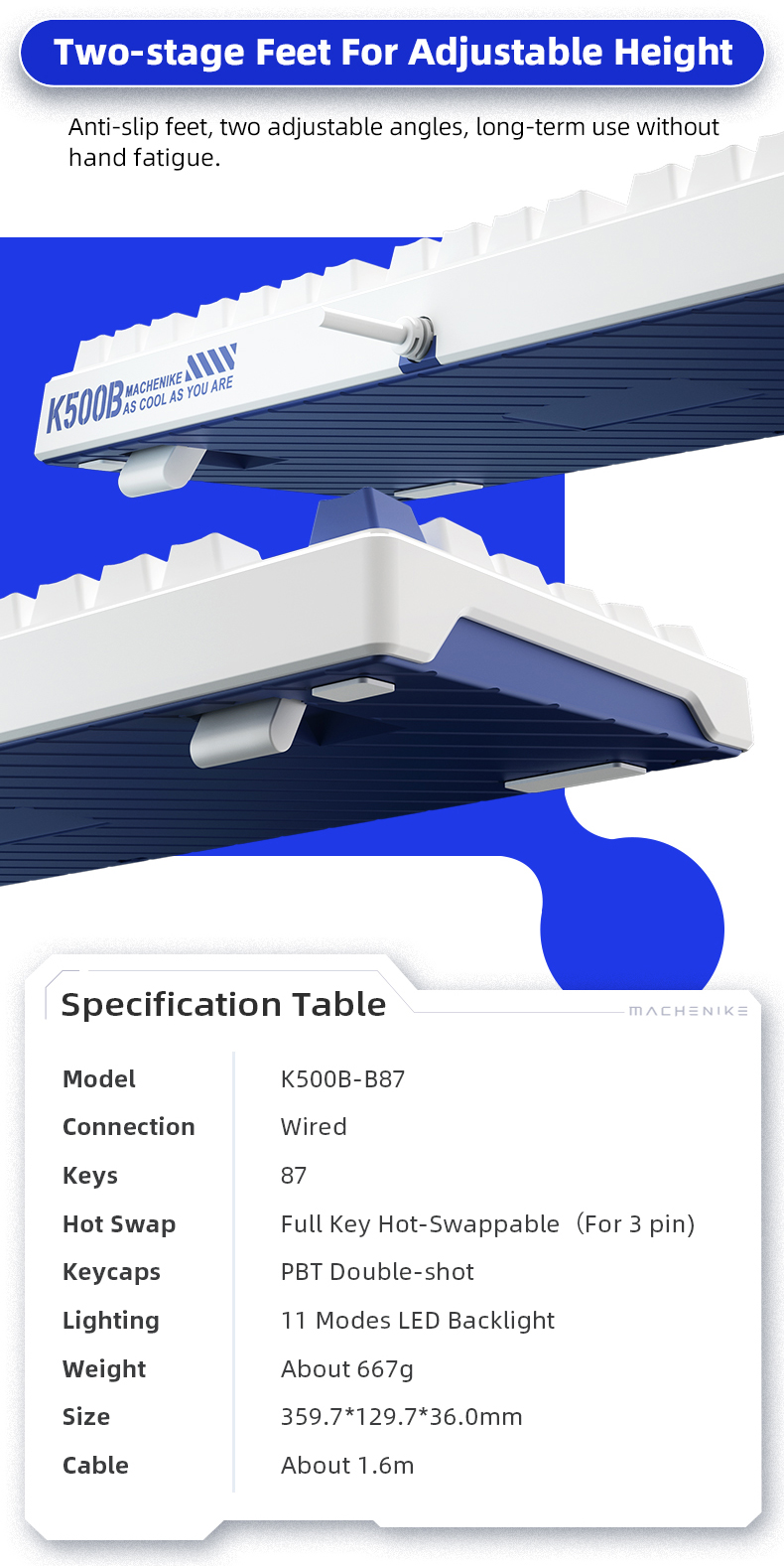 | Tên sản phẩm | Bàn Phím Wireless Machenike K500B-B87 Wired Mixed Light B |