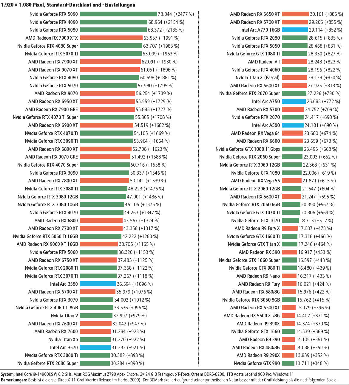 Trong bảng xếp hạng lần này, chúng tôi đã cập nhật thêm một số mẫu VGA mới, trong đó có NVIDIA RTX 5090, RTX 5080, RTX 5070 Ti, RTX 5070, AMD RX 9070 XT, RX 9070, Intel Arc B580 và Arc B570. Bảng xếp hạng này sẽ trình bày kết quả hiệu năng rasterization (render thuần) trước, sau đó là kết quả các bài kiểm tra hiệu năng ray tracing. Lưu ý rằng tất cả các kết quả đều được thực hiện trong điều kiện không kích hoạt các công nghệ upscale hình ảnh như DLSS, FSR và XeSS để đảm bảo tính khách quan và so sánh trực tiếp.