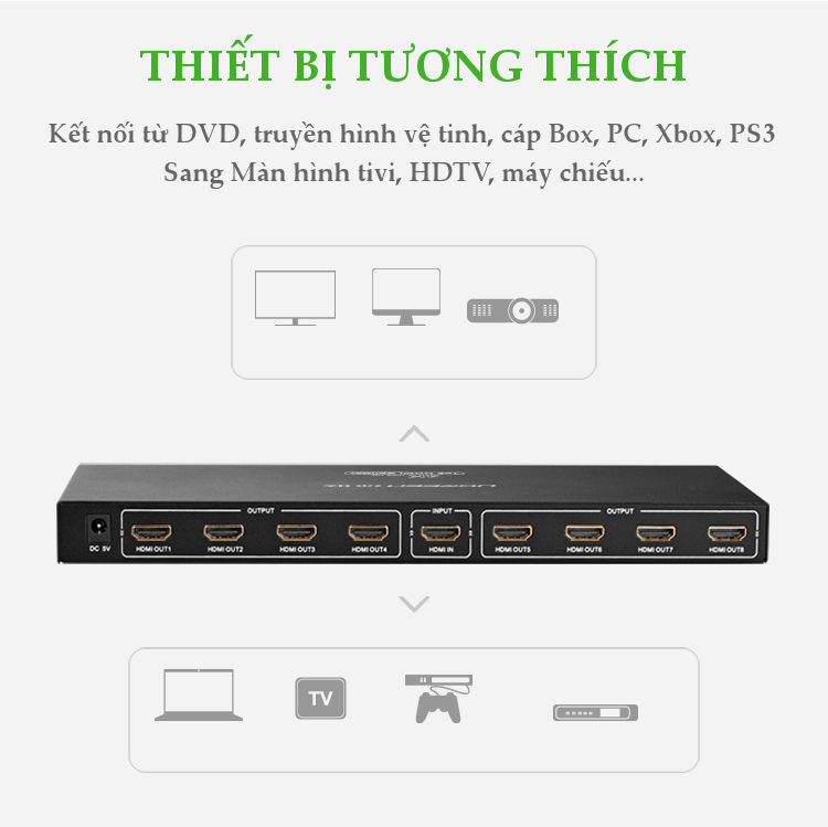 Bộ chia HDMI 8 cổng chính hãng Ugreen 40203 là một thiết bị cho phép người dùng kết nối bất kỳ thiết bị phát hình ảnh kỹ thuật số chất lượng HD, chẳng hạn như:Android tv box, DVD, truyền hình vệ tinh, PC, Xbox, PS3 và nhiều hơn nữa ra 8 màn hình hiển thị HDMI cùng lúc với chất lượng hình ảnh, âm thanh sắc nét sống động với độ phân giải cao.