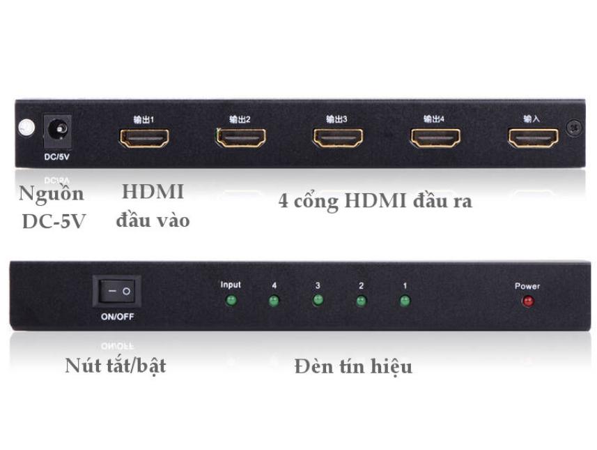 Cổng đầu vào: 1x HDMI vào (Loại A connector), Cổng ra: 4 cổng HDMI âm