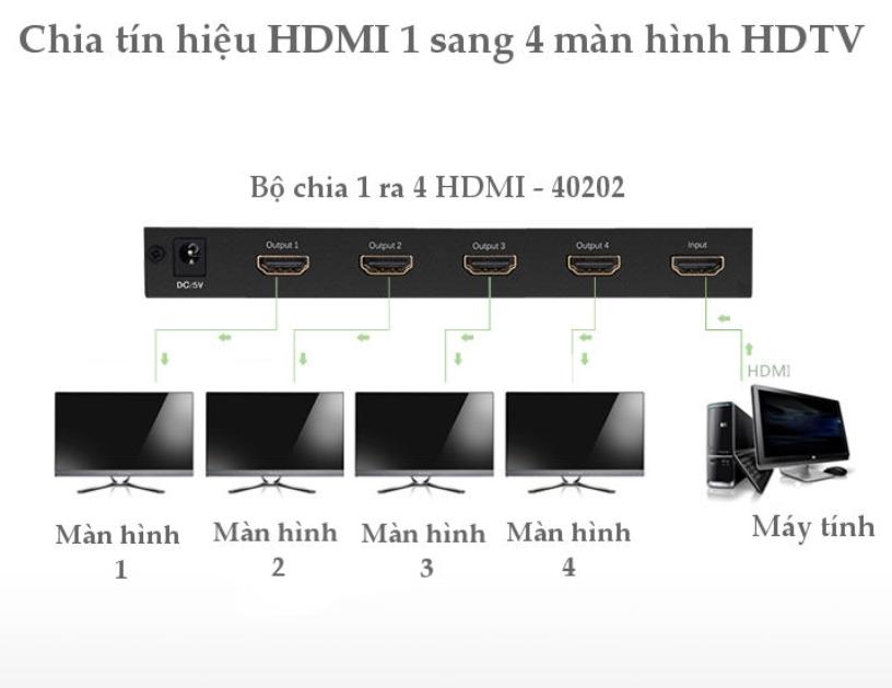 - Tín hiệu đầu ra 4 màn hình hdmi hiển thị giống nhau