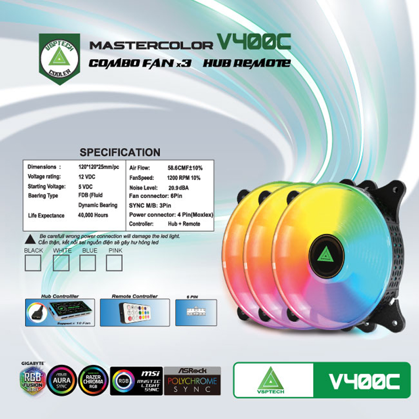 | Tên sản phẩm | BỘ KIT 3 FAN VSP V400C LED ARGB |