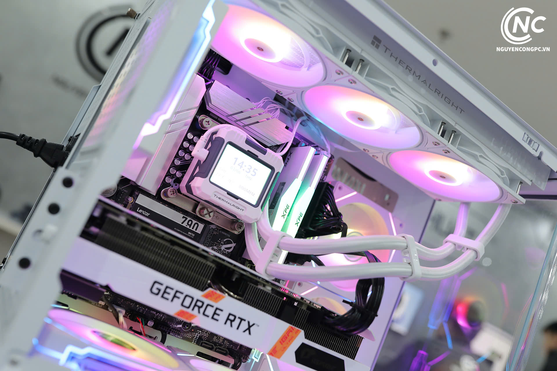 Sở hữu 32GB RAM DDR5 6000MHz, SSD NVMe Gen 4 1TB siêu tốc, và nguồn NZXT 750W 80 Plus Bronze ổn định. Thiết kế trắng tinh tế, có RGB đồng bộ từ RAM, tản nhiệt nước AIO 360mm đến các quạt case. Hiệu năng mạnh mẽ, ngoại hình đỉnh cao, tối ưu cho đa nhiệm và sáng tạo!