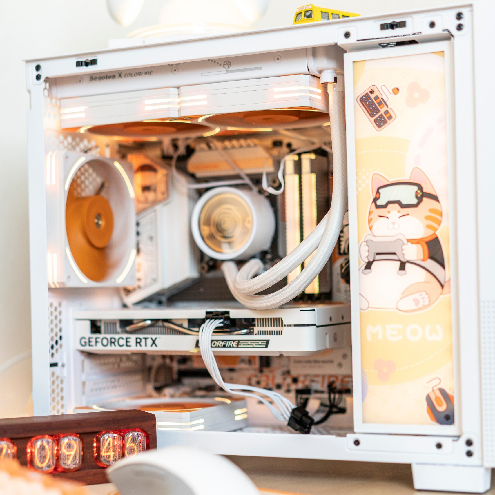 Thiết kế màu cam MEOW Orange không chỉ giúp sản phẩm thêm phần nổi bật mà còn tạo sự đồng điệu với các thành phần khác cùng tông màu trong dàn máy, hoàn thiện một tổng thể thẩm mỹ đầy cá tính. Cùng với đó, pump có logo mèo tạo nên dấu ấn riêng biệt, thể hiện sự sáng tạo và tinh tế trong từng chi tiết. Segotep BeIced II 240 ARGB MEOW Orange không chỉ mang đến khả năng tản nhiệt vượt trội mà còn là một phụ kiện đắt giá cho những ai đánh giá cao cả hiệu năng lẫn phong cách.