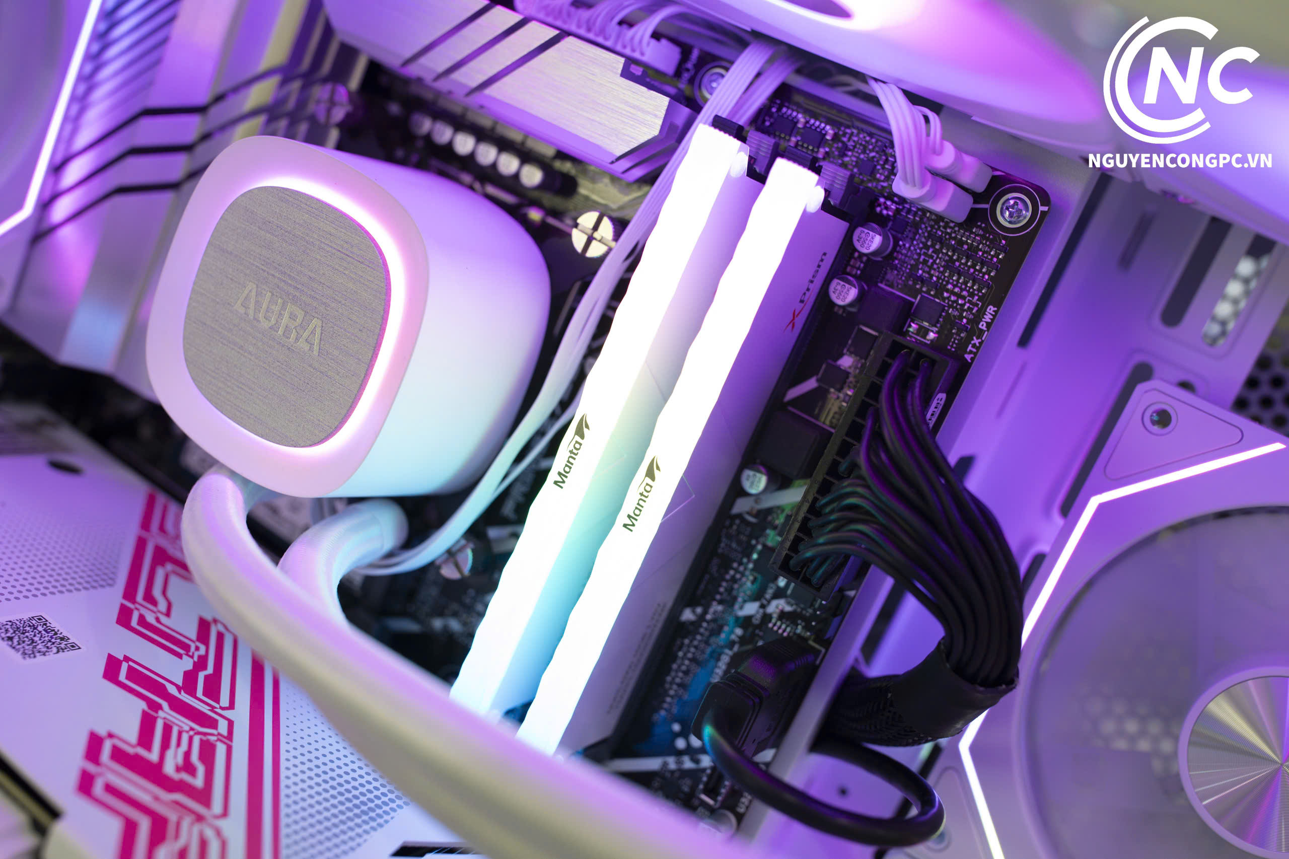 Thiết kế Manta XPrism White nổi bật với tản nhiệt màu trắng sang trọng, kèm đèn LED RGB có thể tùy chỉnh, tạo điểm nhấn thẩm mỹ cho dàn máy. Công nghệ DDR5 giúp tăng băng thông, đồng thời tiết kiệm điện năng, là lựa chọn lý tưởng cho các PC cao cấp.