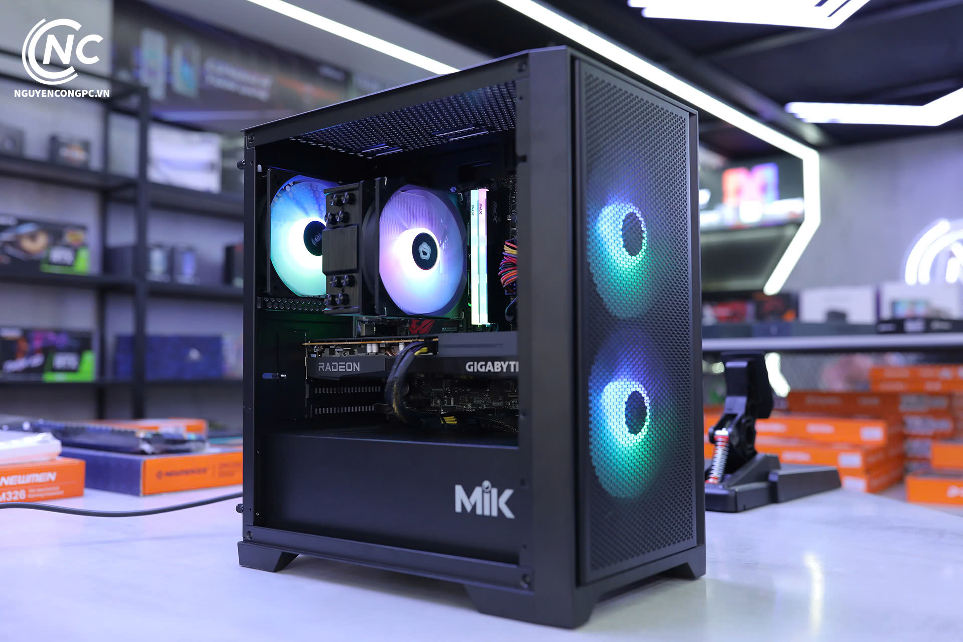 Sở hữu 16GB RAM DDR4 3200MHz (dễ dàng nâng cấp) và SSD NVMe 512GB Gen 3x4 tốc độ cao. Thiết kế hiện đại với vỏ case MIK MORAX 3FA BLACK có sẵn 3 quạt ARGB và tản nhiệt khí ID-COOLING SE-214-XT RGB. Hiệu năng tốt, giá phải chăng, ngoại hình bắt mắt!