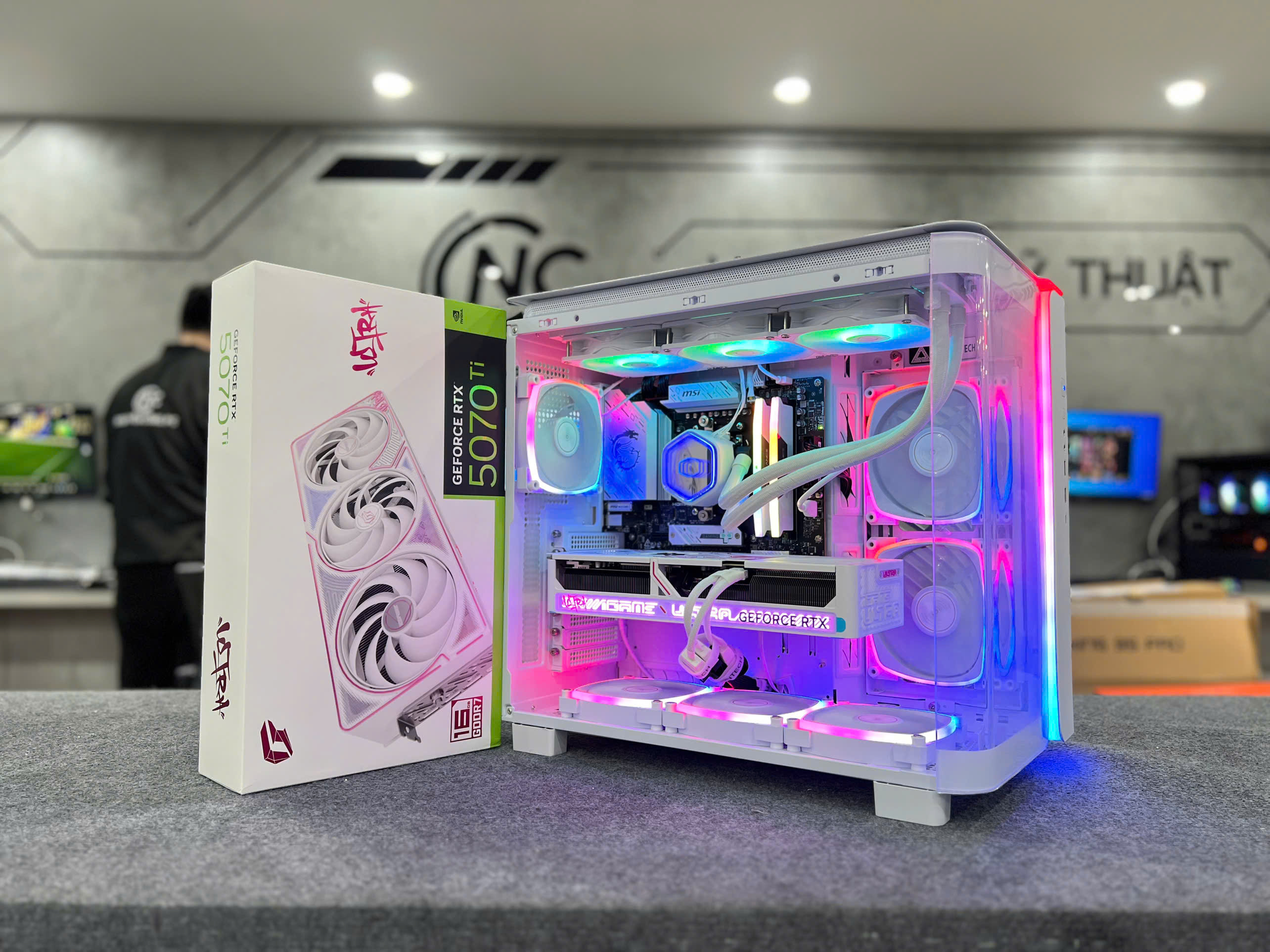 Bộ PC Gaming Ryzen 7 7800X3D / RAM 32GB / VGA RTX 5070 Ti là một cỗ máy được tối ưu hóa cho game thủ và người làm nội dung chuyên nghiệp. Với mức giá 52 triệu, bạn sẽ sở hữu một cấu hình mạnh mẽ có thể chiến mượt mọi tựa game AAA đồng thời đáp ứng tốt các tác vụ sáng tạo như thiết kế đồ họa, chỉnh sửa video hay livestream. Hãy cùng Nguyễn Công PC tìm hiểu chi tiết về từng linh kiện trong bộ PC này để xem nó có gì đặc biệt.