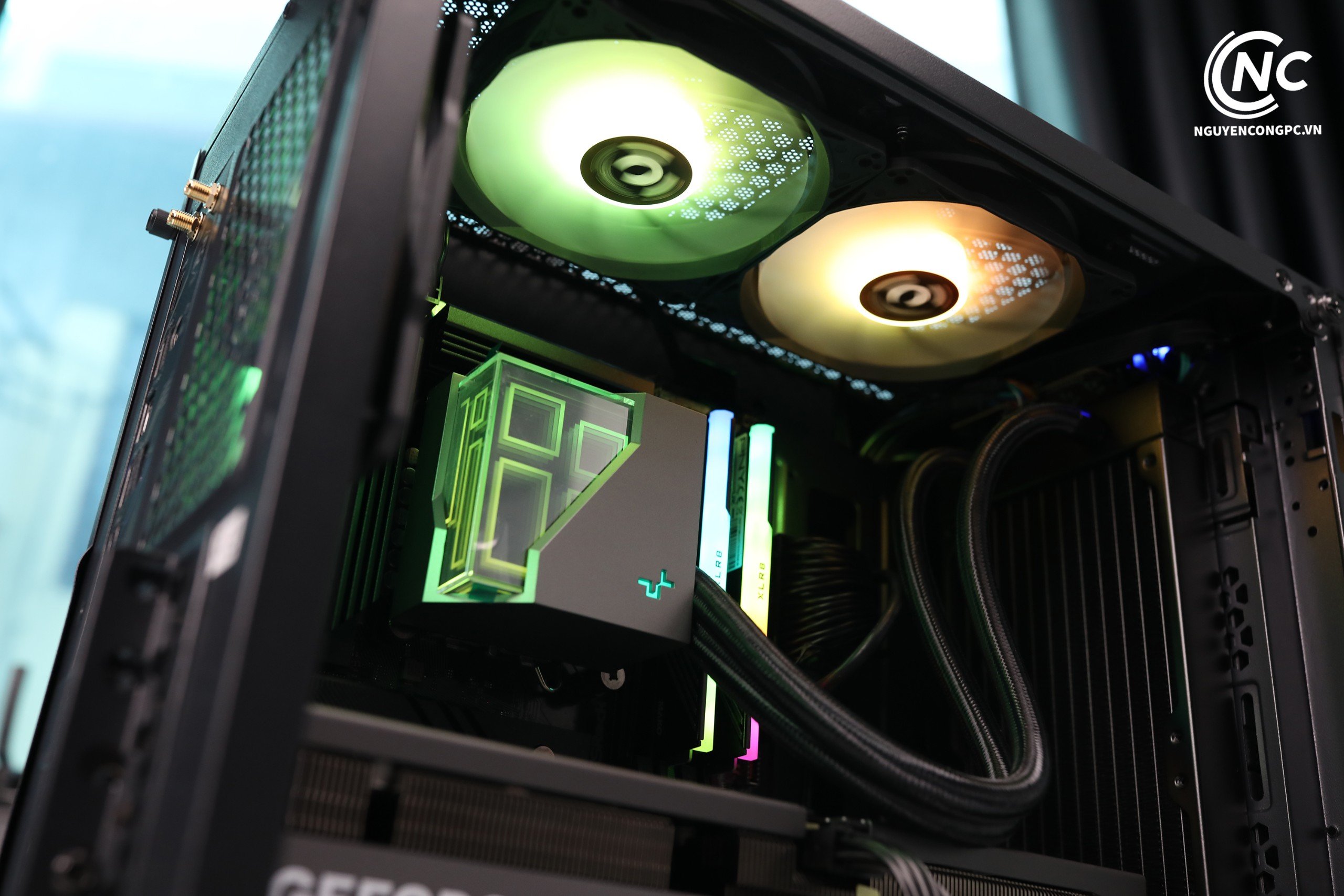 Được hoàn thiện với sự chấm phá độc đáo từ các đường nét giản giản đơn, Deepcool LT720 khoác lên vẻ ngoài đẹp mắt cùng tông màu đen mạnh mẽ nằm ở phần stock tản nhiệt. Đến với vị trí của pump nước, đó là mặt gương vô cực với hình ảnh 3 chiều được chiếu sâu thẳm thêm trong tạo nên sự phản chiếu thú vị của các dải màu và hình học bên trong. Đây sẽ là chiếc tản nhiệt AIO tuyệt vời cho nhu cầu trang trí dàn PC đẹp mắt.