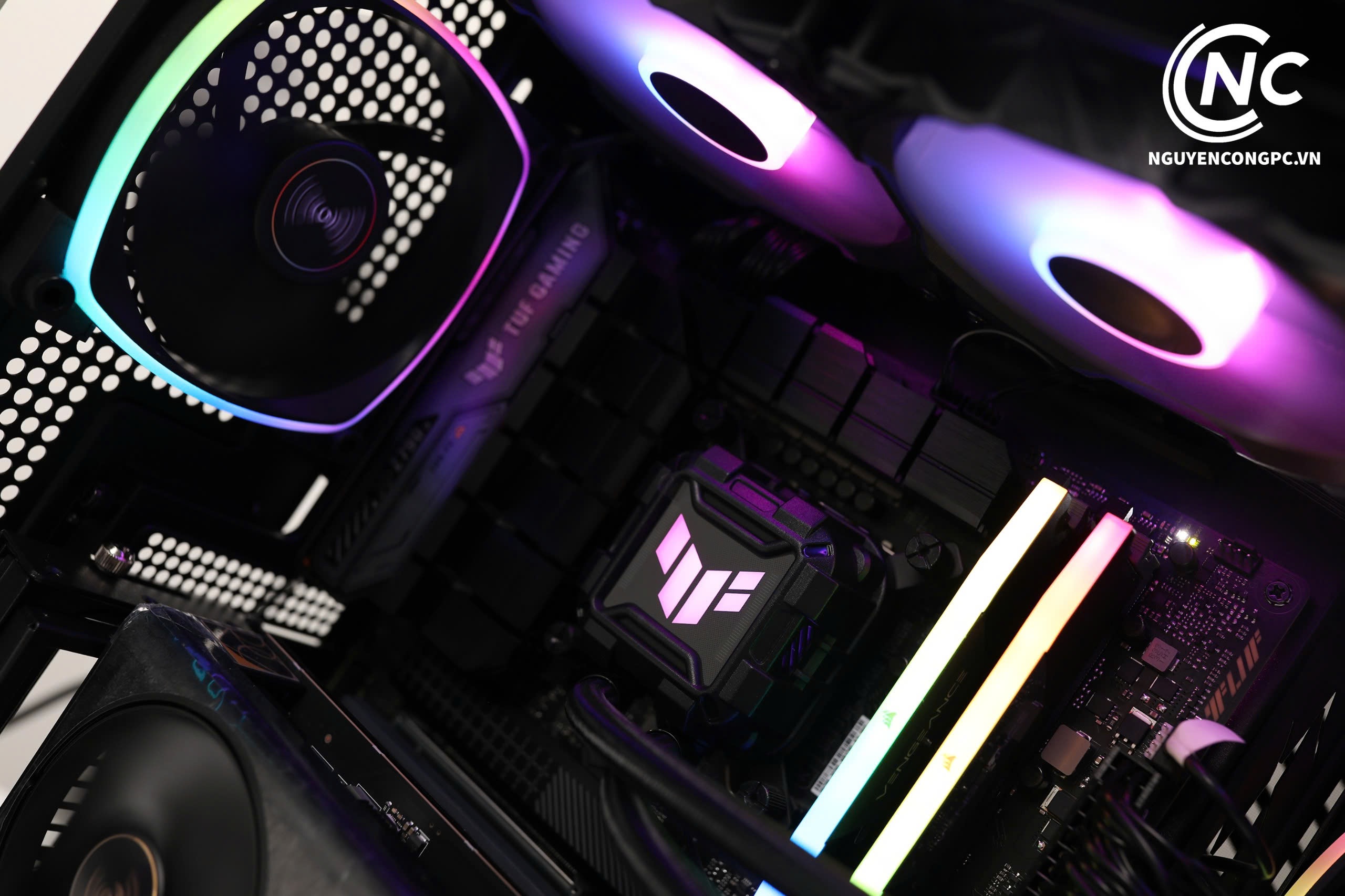 Trong khi đó, các thành phần Aura Sync ARGB chiếu sáng quạt tản nhiệt và logo TUF Gaming trên nắp máy bơm đảm bảo rằng bạn sẽ có phong cách riêng.
