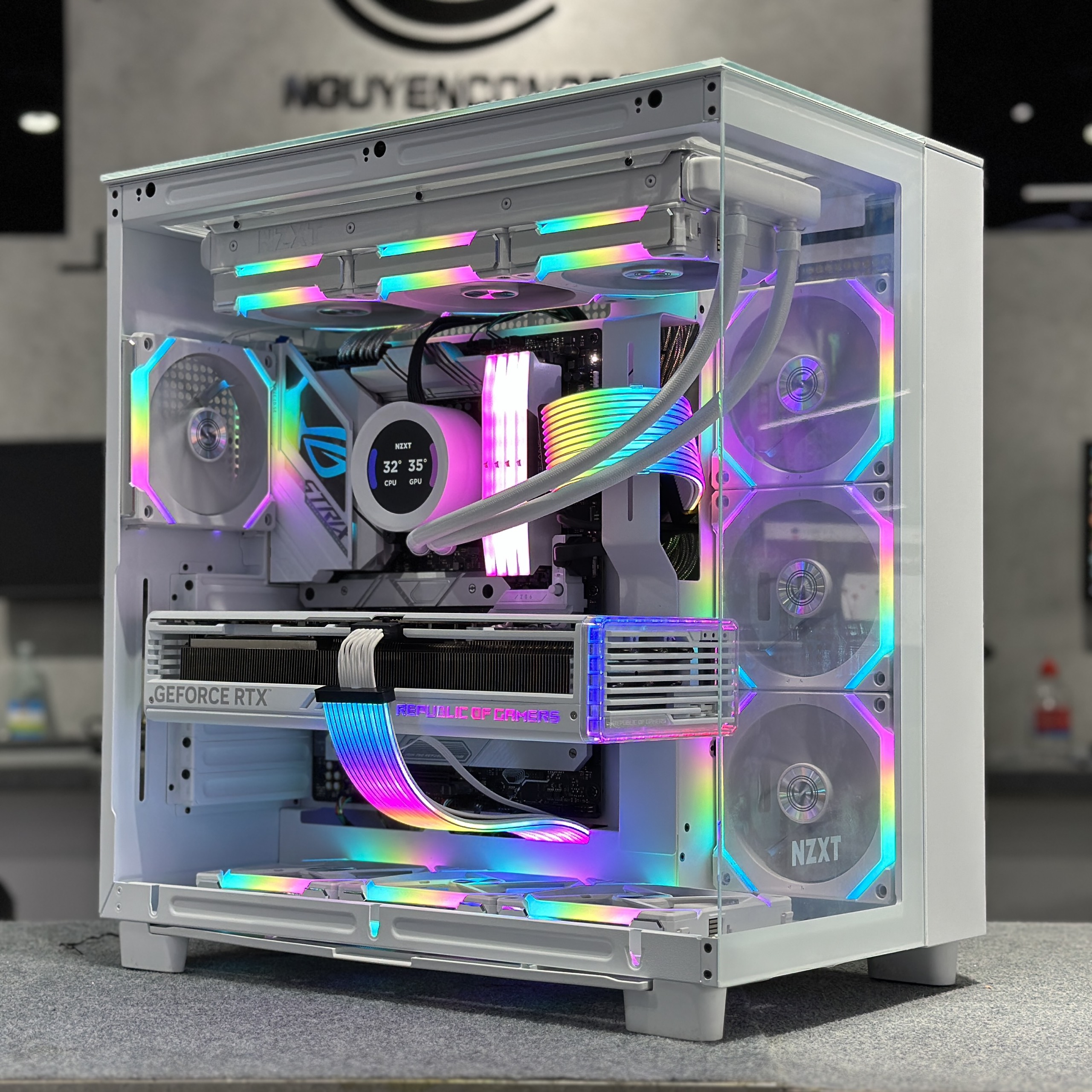 Có thể nói, đây là bộ PC giúp bạn hoàn thành mọi công việc như Photoshop, Illustrator, Lightroom, AutoCAD, Lumion, SketchUp, V-Ray mà không cần phải lo lắng máy bị giật lag. Bộ PC này được trang bị CPU Intel i9 14900K (thế hệ mới nhất của Intel) kết hợp với RTX 4080 Super mạnh mẽ, tạo nên một hiệu suất làm việc và giải trí ổn định, mượt mà. Vẻ ngoài của máy cũng là một điểm cộng với thiết kế tinh tế và sang trọng, nhờ vào vỏ case từ NZXT...