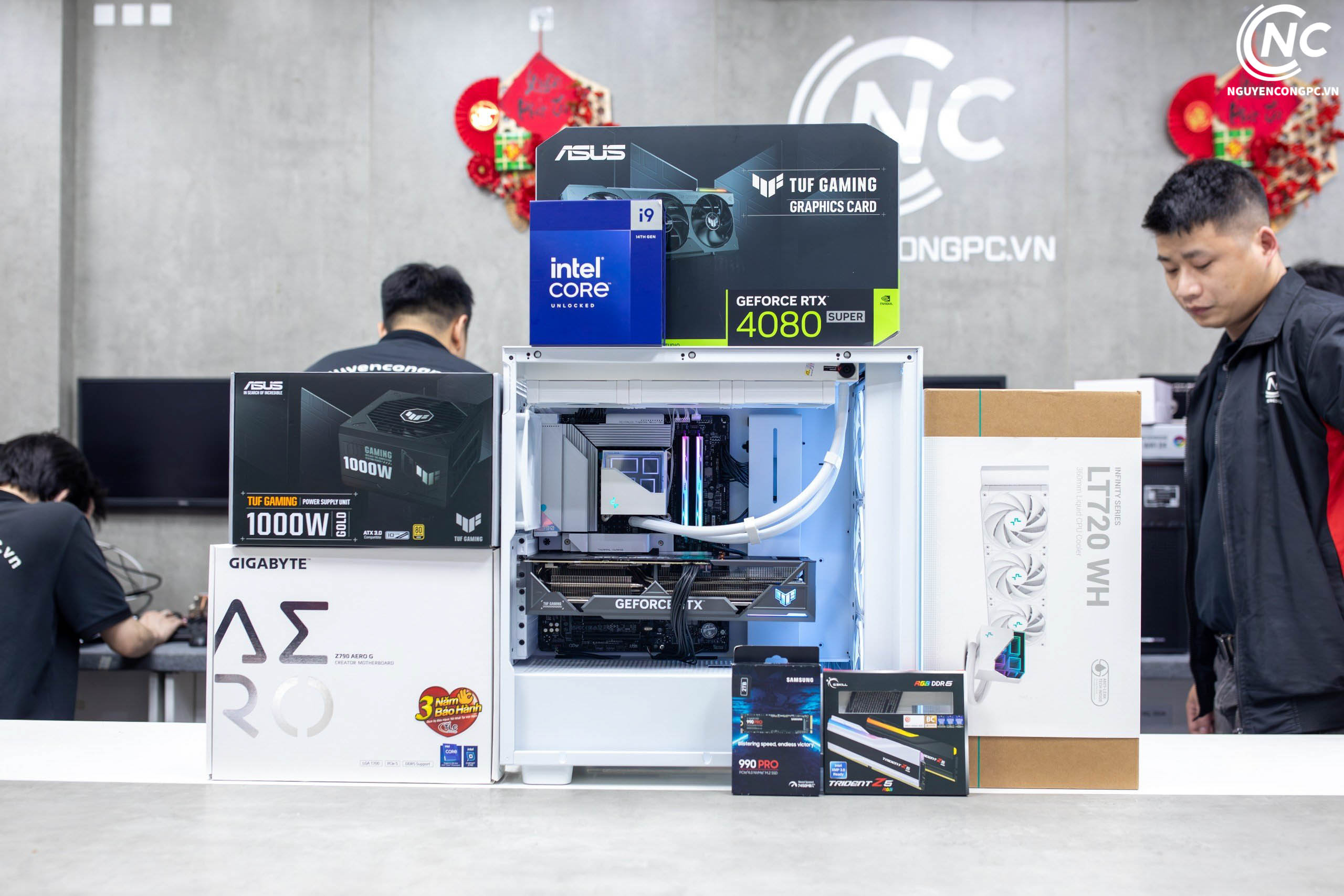 Bộ máy với sự kết hợp giữa CPU i9 14900k và VGA RTX 4080S sẽ giúp bạn cân hầu hết các phần mềm làm việc như Ps, Ai, Lr, Autocad, Lumion, Sketchup, Vray... và tất cả các tựa game hiện nay. Bên cạnh đó, với thiết kế tinh tế nhờ sự kết hợp hài hòa giữa các linh kiện sẽ giúp bạn sỡ hữu một bộ pc có hiệu năng mạnh mẽ mang trong mình vẻ đẹp tinh tế đến từ những thương hiệu top đầu linh kiện máy tính như Intel, Asus, Gigabyte, Samsung, WD, NZXT..