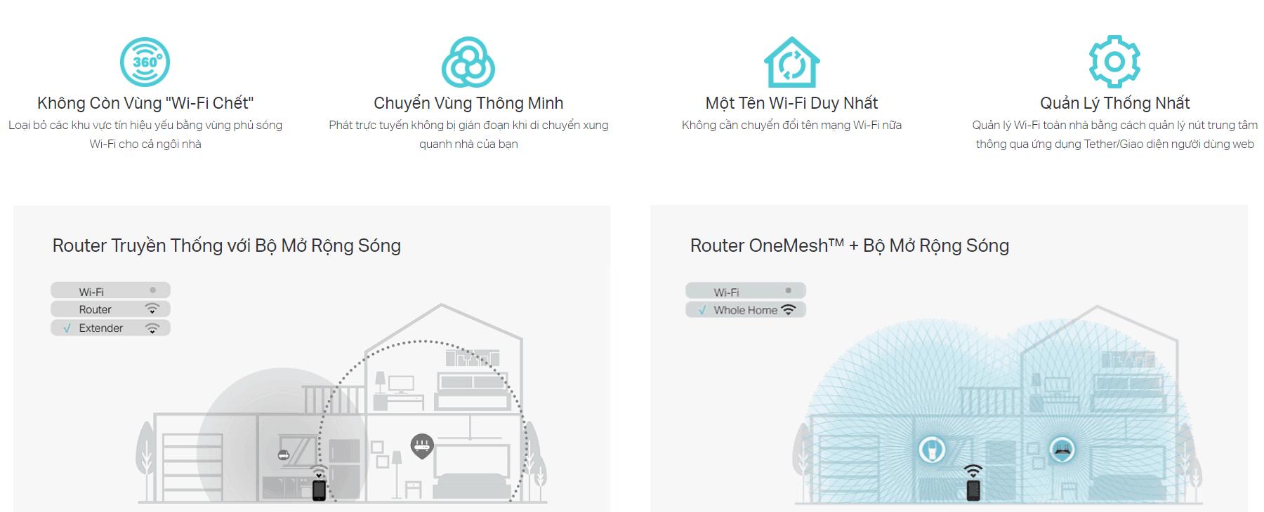 OneMesh là một cách đơn giản để tạo mạng Mesh với một tên Wi-Fi duy nhất để phủ sóng toàn bộ ngôi nhà một cách liền mạch. Chỉ cần kết nối bộ mở rộng sóng OneMesh™ với Router OneMesh ™. Không còn phải tìm kiếm kết nối ổn định.