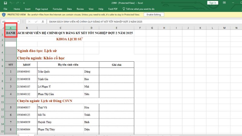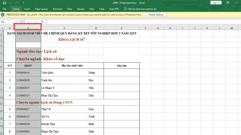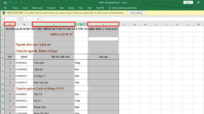 Chọn các cột liền kề: Bôi đen các cột ở cả hai bên của cột (hoặc nhóm cột) bị ẩn.