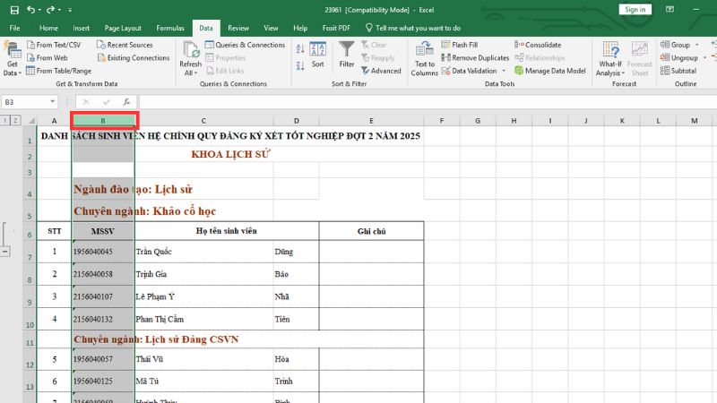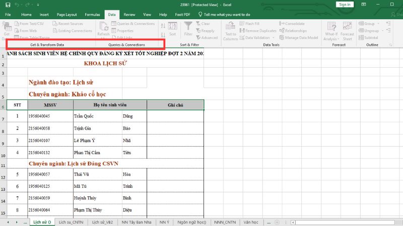 Đi đến tab Data (Dữ liệu) trên thanh công cụ.