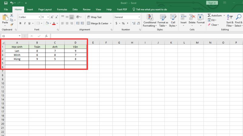 Ví dụ: Sử dụng cho bảng điểm học sinh nhiều môn.