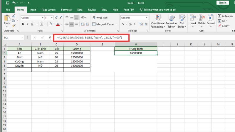 Cú pháp: =AVERAGEIFS(average_range, criteria_range1, criteria1, [criteria_range2, criteria2], ...)