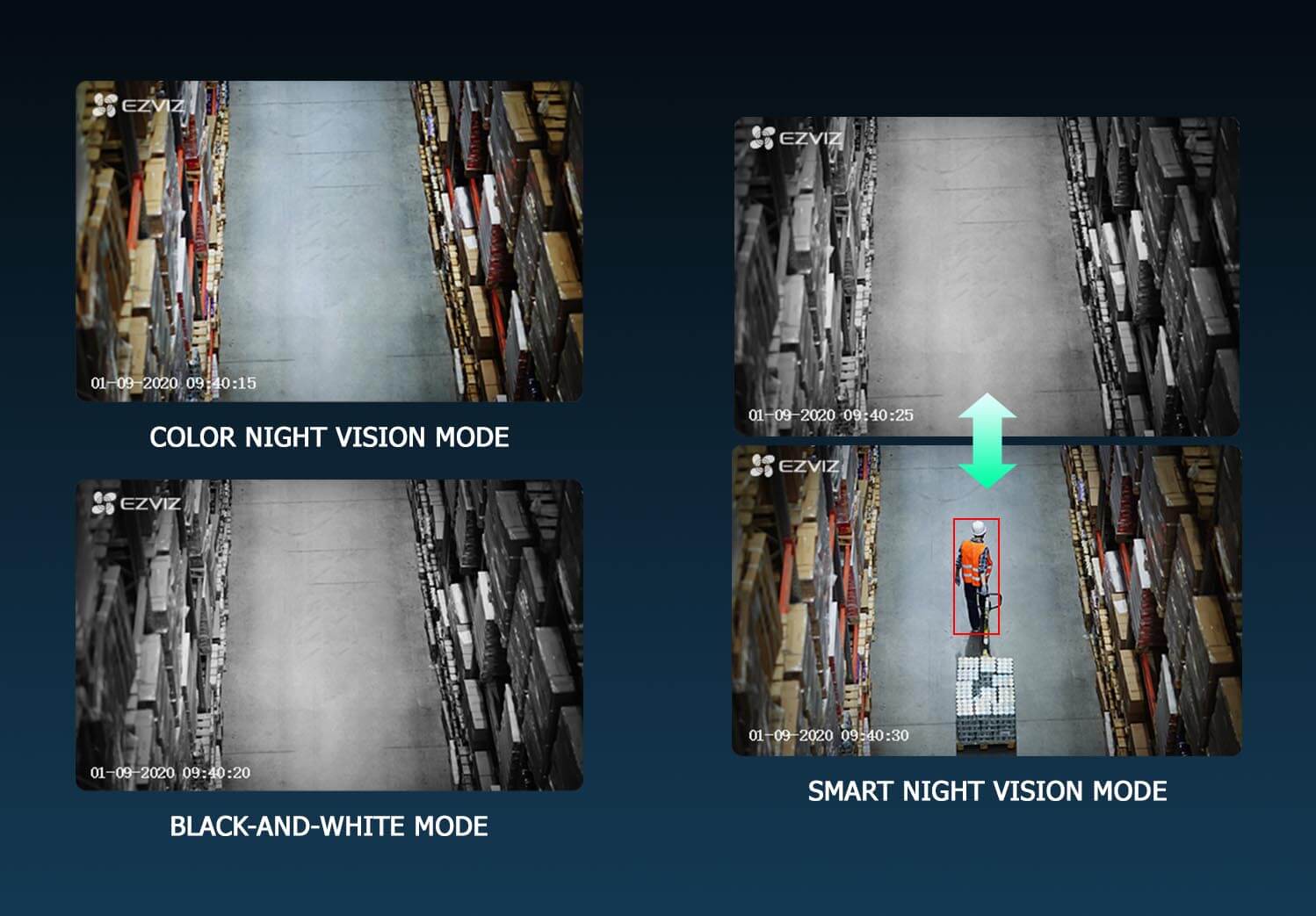 Khi không cần đèn rọi, bạn có thể tắt chúng đi một cách dễ dàng thông qua app EZVIZ và thiết bị sẽ chuyển sang chế độ ghi hình đen trắng vào ban đêm. Đặc biệt hơn cả là chế độ ghi hình đêm thông minh. Với chế độ này, C3N có thể tự động chuyển đổi từ chế độ ghi hình đen trắng sang chế độ ghi hình có màu qua việc bật đèn rọi khi phát hiện có hoạt động của con người trong tầm giám sát. Video cảnh báo sẽ là video có màu, giúp bạn nhìn rõ toàn bộ các chi tiết cần thiết.