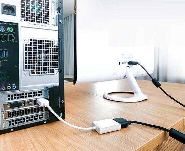 - Chuyển đổi từ cổng DisplayPort ở laptop, máy tính hoặc thiết bị phát của bạn ra chuẩn VGA