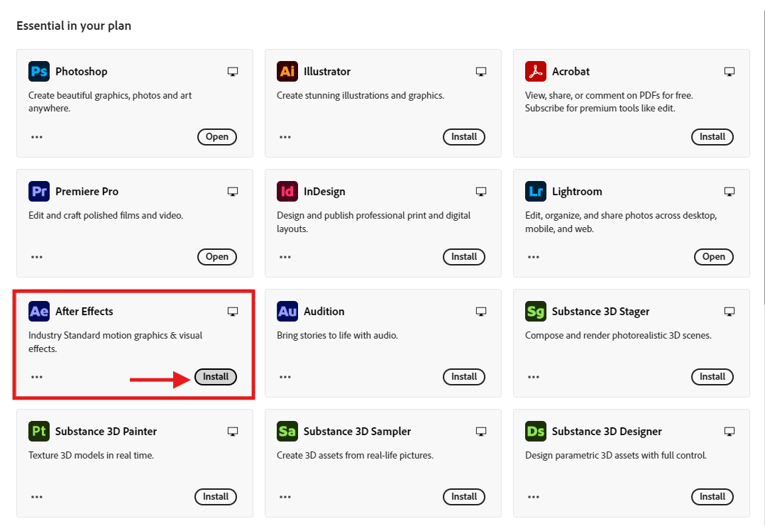 Bước 2: Cài đặt After Effects (Bản chính thức)