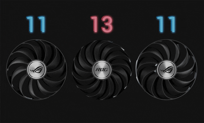 | ASUS ROG Strix Radeon RX 6800 OC 16GB GAMING Thế hệ này có thiết kế quạt công nghệ Axial đã hoàn thiện với số lượng cánh tăng trên cả ba quạt: 13 trên quạt trung tâm và 11 trên quạt phụ. Các vòng chắn ở quạt bên đã được làm mỏng để cho phép hút gió bên nhiều hơn và cung cấp luồng không khí tốt hơn qua mảng làm mát. Các cánh phụ của quạt trung tâm và vòng có chiều cao đầy đủ cung cấp áp suất tĩnh được tăng cường để thổi không khí trực tiếp vào bộ tản nhiệt GPU. Sự phát triển về thiết kế quạt được tối ưu hóa đặc biệt cho một bộ tản nhiệt mới lớn có nhiều cánh tản nhiệt và diện tích bề mặt hơn so với các lần lặp trước. |