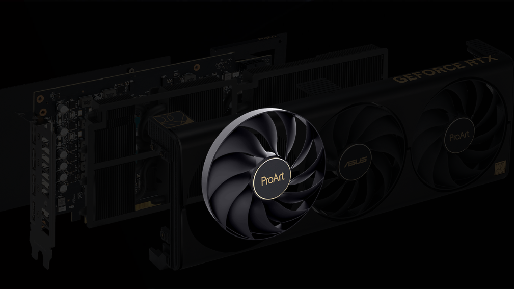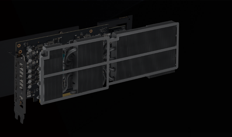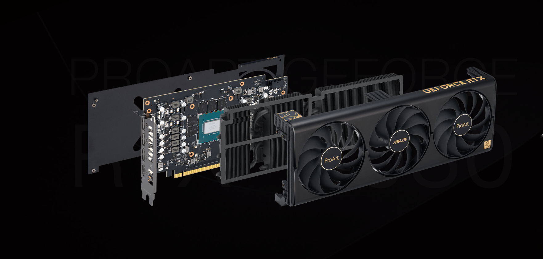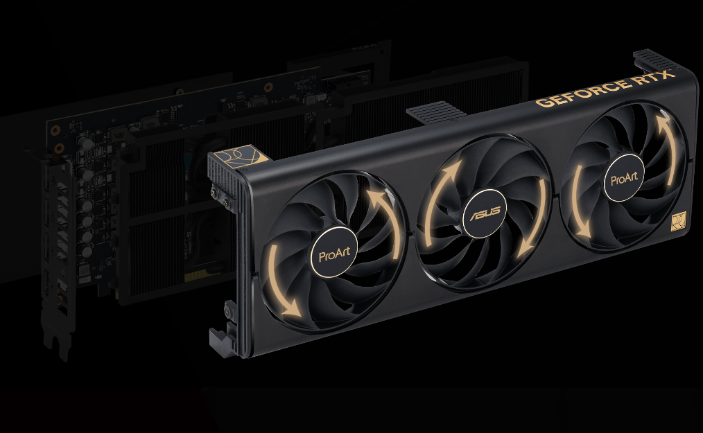 Các ống tản nhiệt dẫn nhiệt hiệu quả vào một ngăn xếp dạng vây được tối ưu hóa cho luồng không khí từ các quạt công nghệ hướng trục. Toàn bộ mảng được khoác lên mình màu đen kín đáo để phù hợp với chủ đề ProArt.