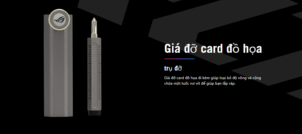 1 x Thẻ sưu tập 1 x Sách hướng dẫn cài đặt tốc độ 1 x Thẻ cảm ơn 1 x Giá đỡ card đồ họa ROG 1 x Móc & vòng khóa Velcro ROG |