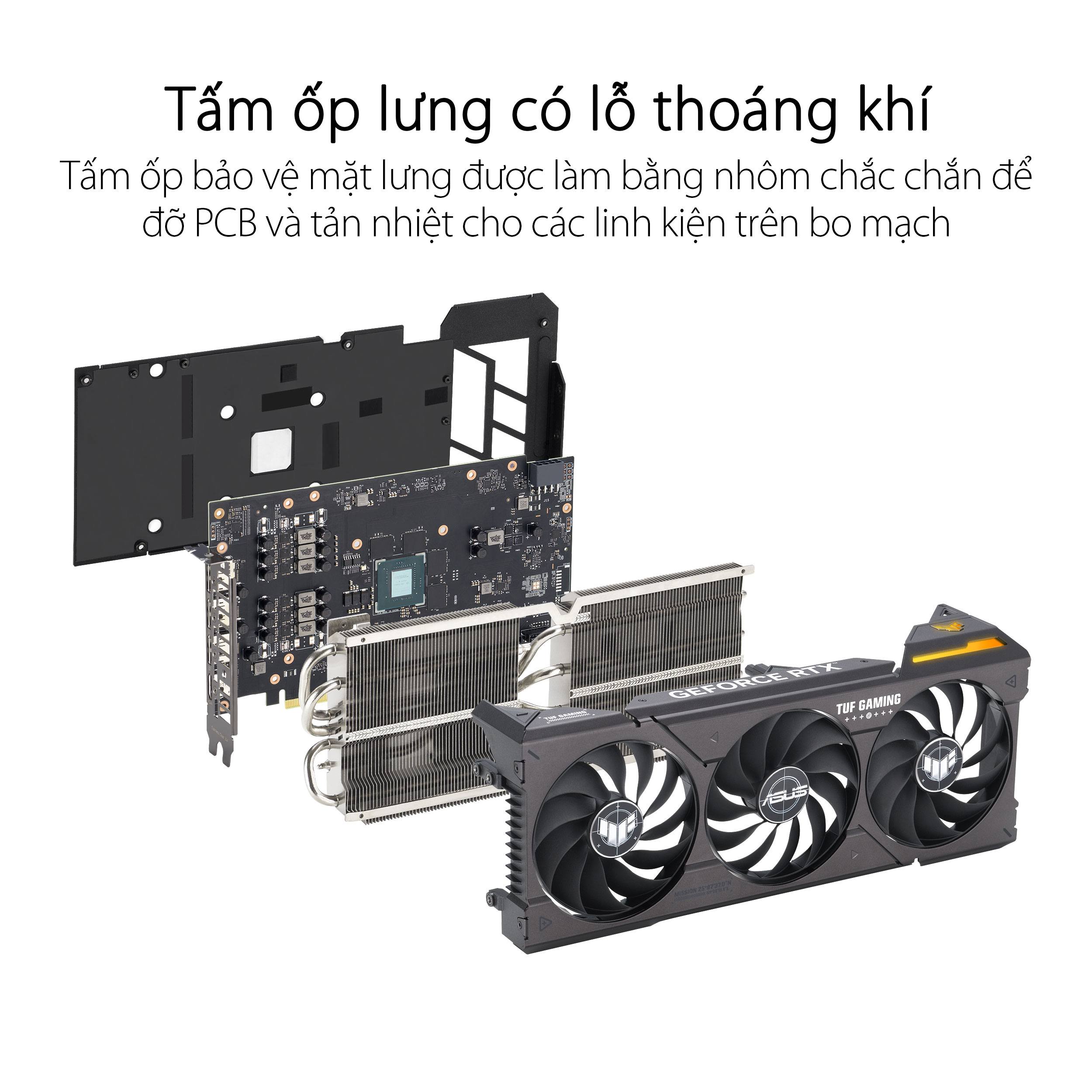 | Phụ kiện | 1 x Thẻ sưu tập 1 x Sách hướng dẫn cài đặt tốc độ 1 x Thẻ cảm ơn 1 x Giá đỡ card đồ họa TUF 1 x Giấy chứng nhận chơi game TUF 1 x Móc & vòng khóa dán TUF |