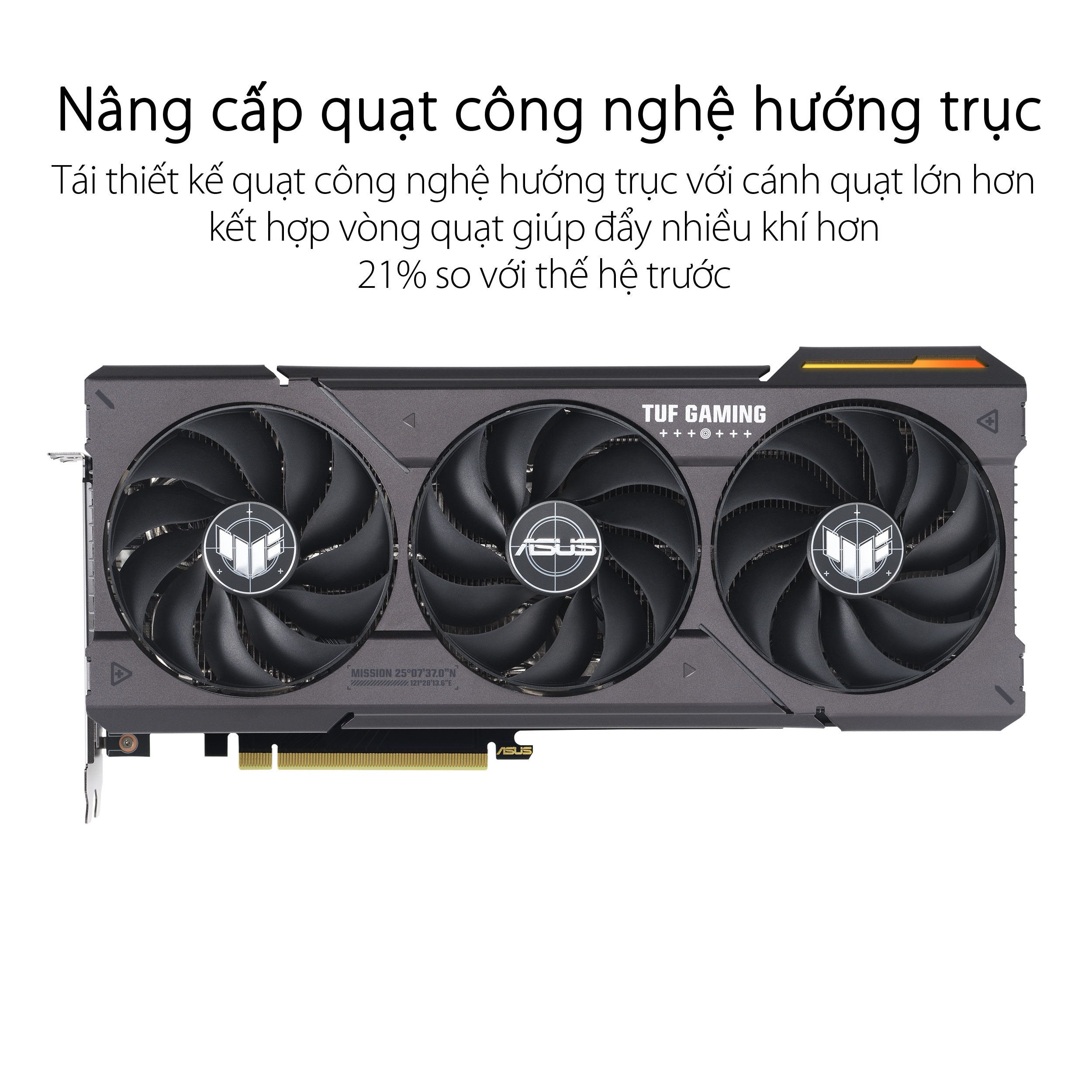 Bên cạnh việc nâng cấp hệ thống tản nhiệt, ASUS TUF RTX 4060 Ti OC được trang bị quạt tản nhiệt sử dụng công nghệ hướng trục (Axial-tech fans) kết hợp cùng vòng bi quạt kép có tuổi thọ gấp đôi so với các thiết kế thông thường cung cấp luồng không khí nhiều hơn 21% so với thế hệ trước. Với tất cả những cải tiến này, ASUS TUF RTX 4060 Ti OC sẽ hoạt động vô cùng ổn định với nhiệt độ được xử lý thông minh.