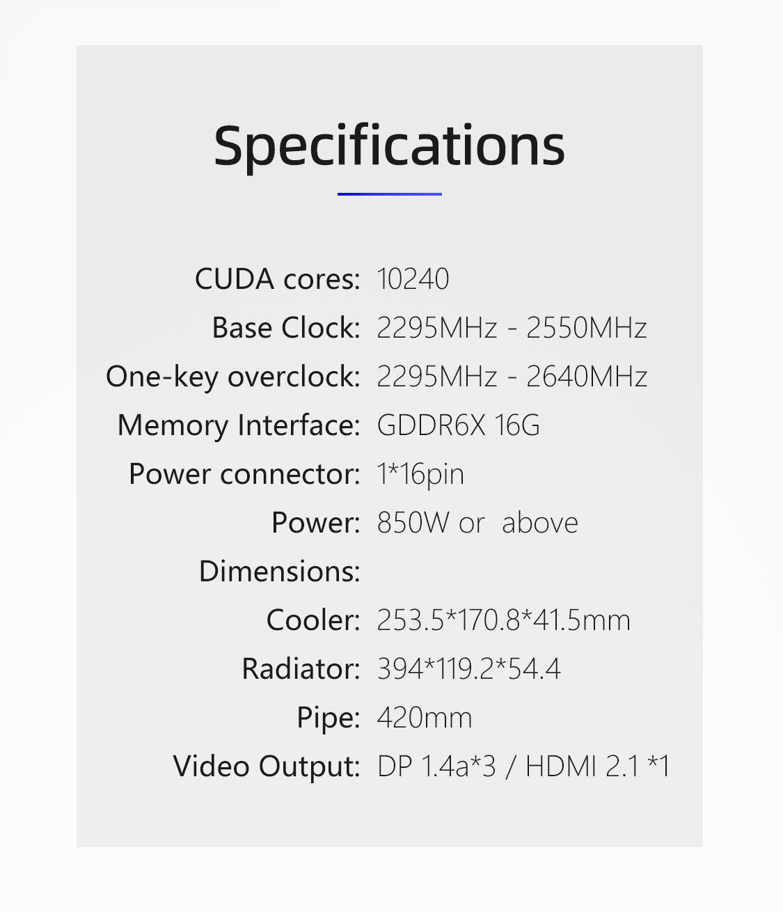 | PRODUCT SIZE | card:253.5*170.8*41.5mm cooler:394*119.2*54.4mm |