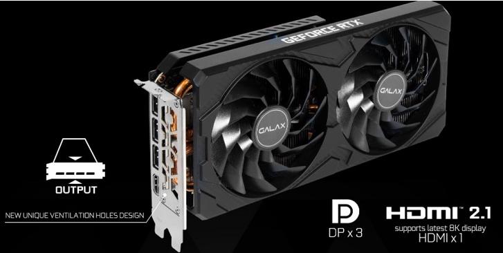 Thiết kế Card màn hình Galax RTX 3070 sở hữu thiết kế tản nhiệt khí 2 quạt với nhiều cánh, gọn gàng nhưng vẫn thể hiện được sự mạnh mẽ từ ngoại hình với thiết kế 11 cánh quạt mới. Ở thiết kế này, Galax RTX 3070 còn cung cấp làn gió tản nhiệt và áp lực gió tốt nhất với mức ồn tối thiểu.