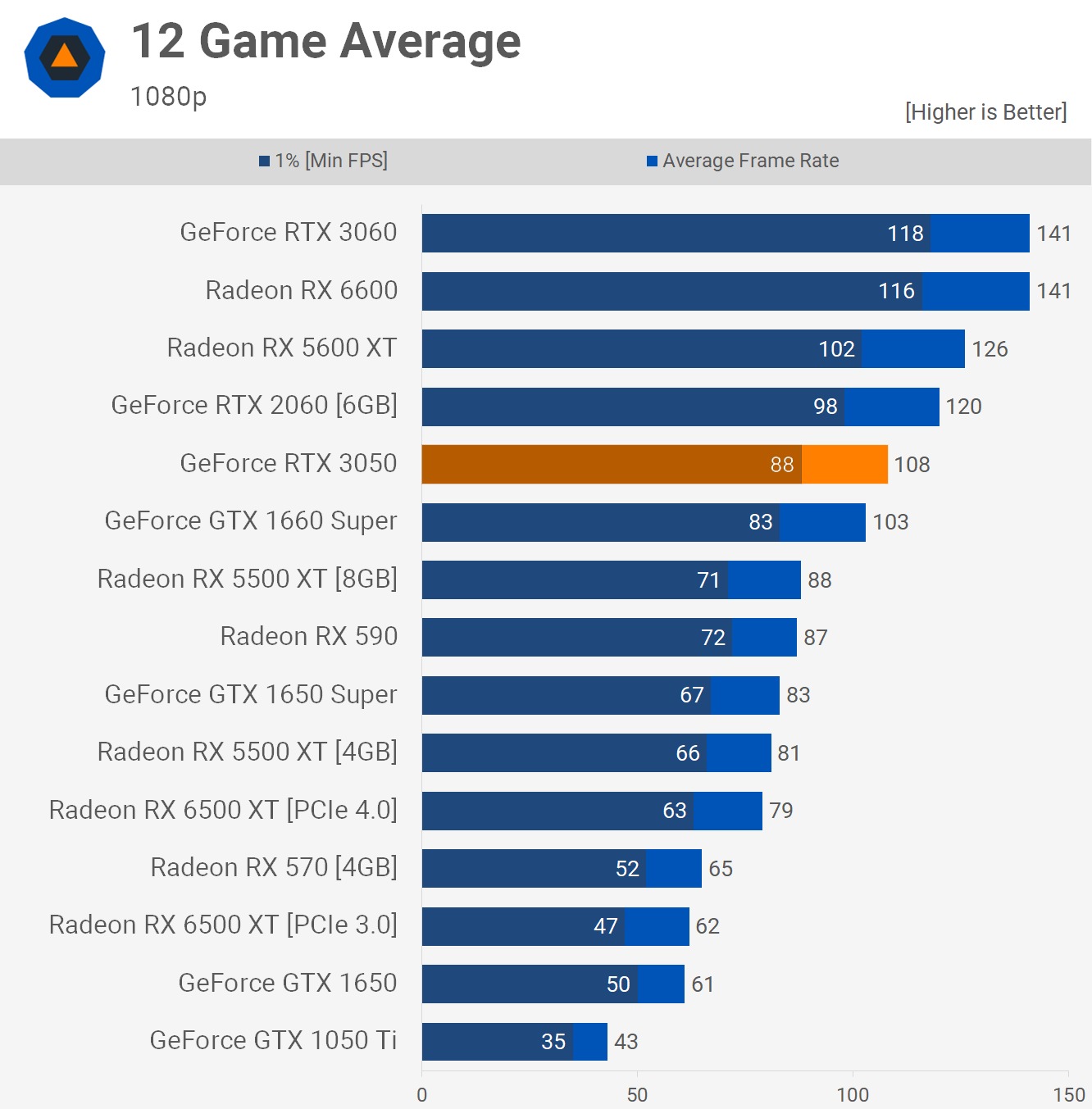 - So với các đàn anh: Nó chậm hơn GTX 1660 Super khoảng 5%, thua RTX 2060 khoảng 10% và kém hơn Radeon RX 6600 khoảng 23%.
