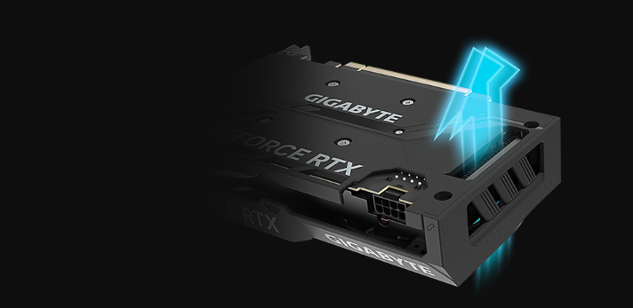 Hệ thống làm mát WINDFORCE có hai quạt cánh quạt độc đáo 80 mm, quay xen kẽ, ống dẫn nhiệt bằng đồng tổng hợp chạm trực tiếp vào GPU, quạt hoạt động 3D và Làm mát màn hình, cùng nhau mang lại khả năng tản nhiệt hiệu quả cao.