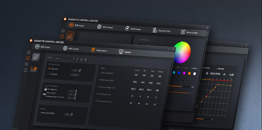GIGABYTE CONTROL CENTER (GCC) là một phần mềm hợp nhất cho tất cả các sản phẩm được GIGABYTE hỗ trợ. Nó cung cấp một giao diện trực quan cho phép người dùng điều chỉnh tốc độ xung nhịp, điện áp, chế độ quạt và mục tiêu năng lượng trong thời gian thực.