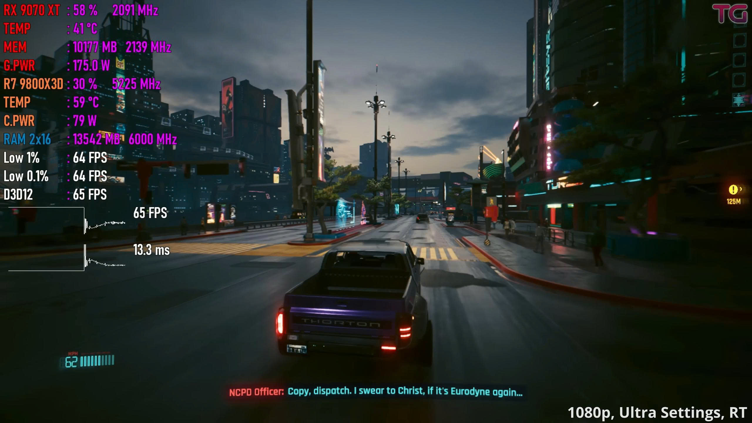 Kết quả yếu hơn khoảng 6% so với đối thủ là 5070 Ti. Tuy nhiên VGA này 9070 XT mạnh hơn dòng cũ (7900 GRE) tới 35% ở hiệu năng xử lý hình ảnh thông thường (raster). Tuy nhiên, thực tế kiểm tra chỉ tăng khoảng 20%.