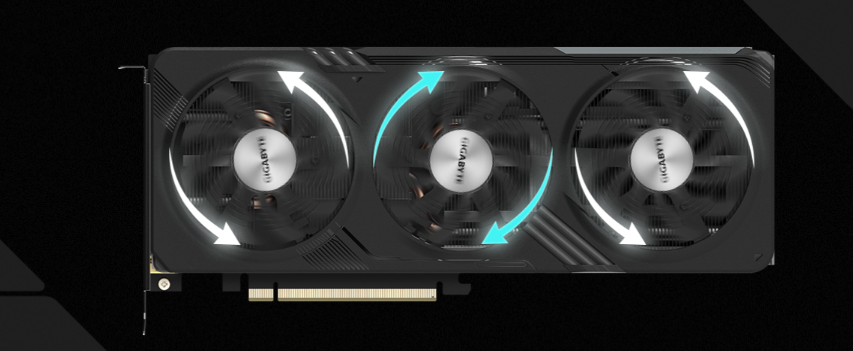 Hệ thống làm mát WINDFORCE có ba quạt cánh quạt độc đáo 80mm, quay xen kẽ, ống dẫn nhiệt bằng đồng tổng hợp tiếp xúc trực tiếp với GPU, quạt hoạt động 3D và Làm mát màn hình, cùng nhau mang lại khả năng tản nhiệt hiệu quả cao.