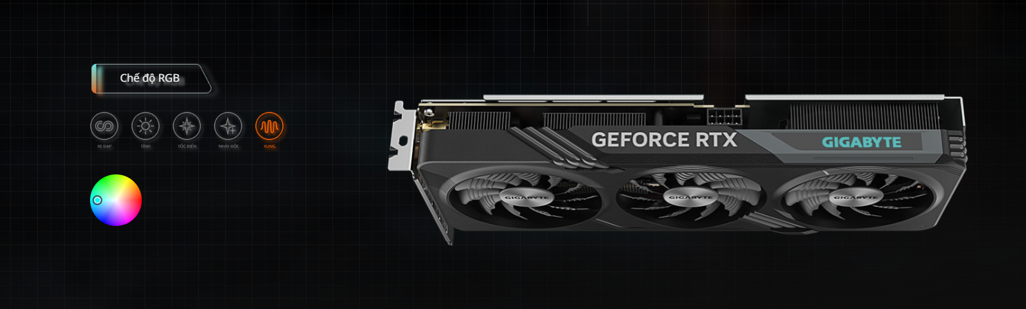 Với 16,7 triệu tùy chọn màu có thể tùy chỉnh và nhiều hiệu ứng ánh sáng, bạn có thể chọn bất kỳ hiệu ứng ánh sáng nào hoặc đồng bộ hóa với các thiết bị khác trong GIGABYTE CONTROL CENTER.