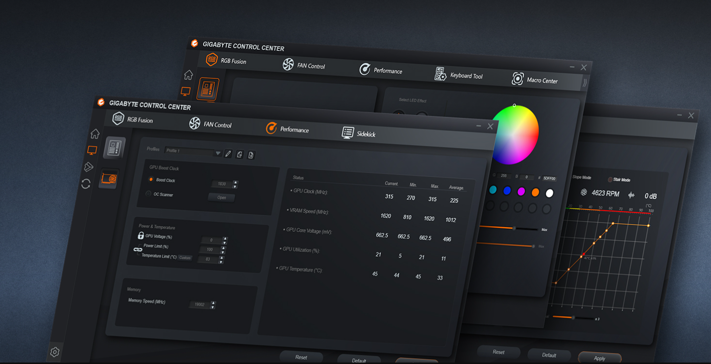 GIGABYTE CONTROL CENTER là một phần mềm hợp nhất cho tất cả các sản phẩm được GIGABYTE hỗ trợ. Nó cung cấp một giao diện trực quan cho phép người dùng điều chỉnh tốc độ xung nhịp, điện áp, chế độ quạt và mục tiêu năng lượng trong thời gian thực.