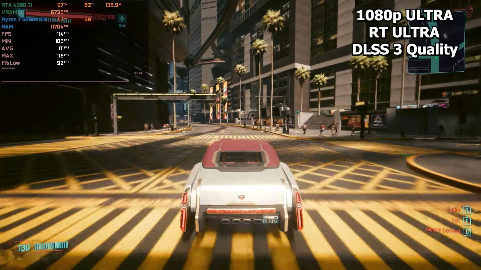 - Nhờ DLSS 3, hiệu suất tăng vọt. Ví dụ trong Cyberpunk 2077, khi bật DLSS 3 Quality + Frame Gen, FPS có thể tăng từ mức ~40 (gốc) lên tới ~80-90 FPS cực kỳ mượt mà.