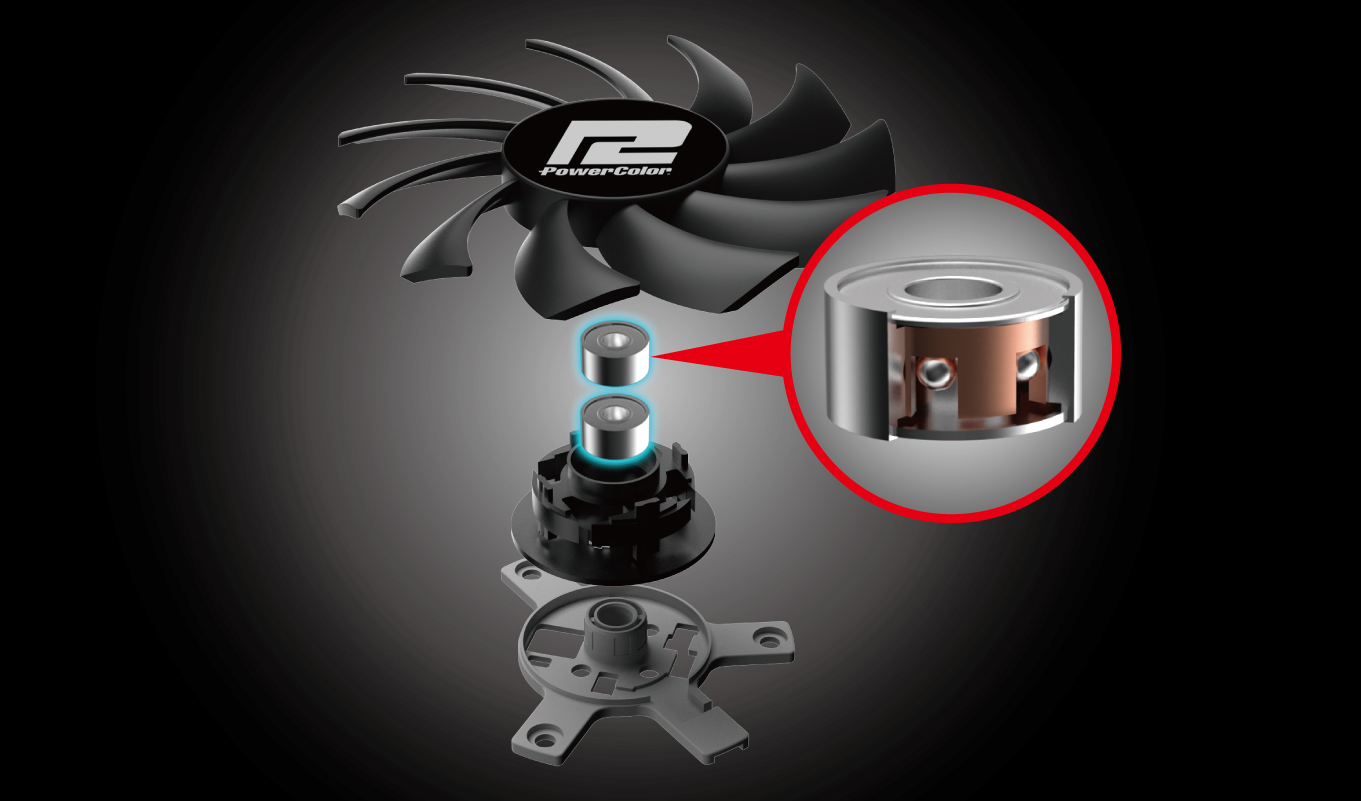 Quạt giải nhiệt sử dụng công nghệ ổ bi hai bi giúp tăng tuổi thọ của quạt lên gấp 4 lần.