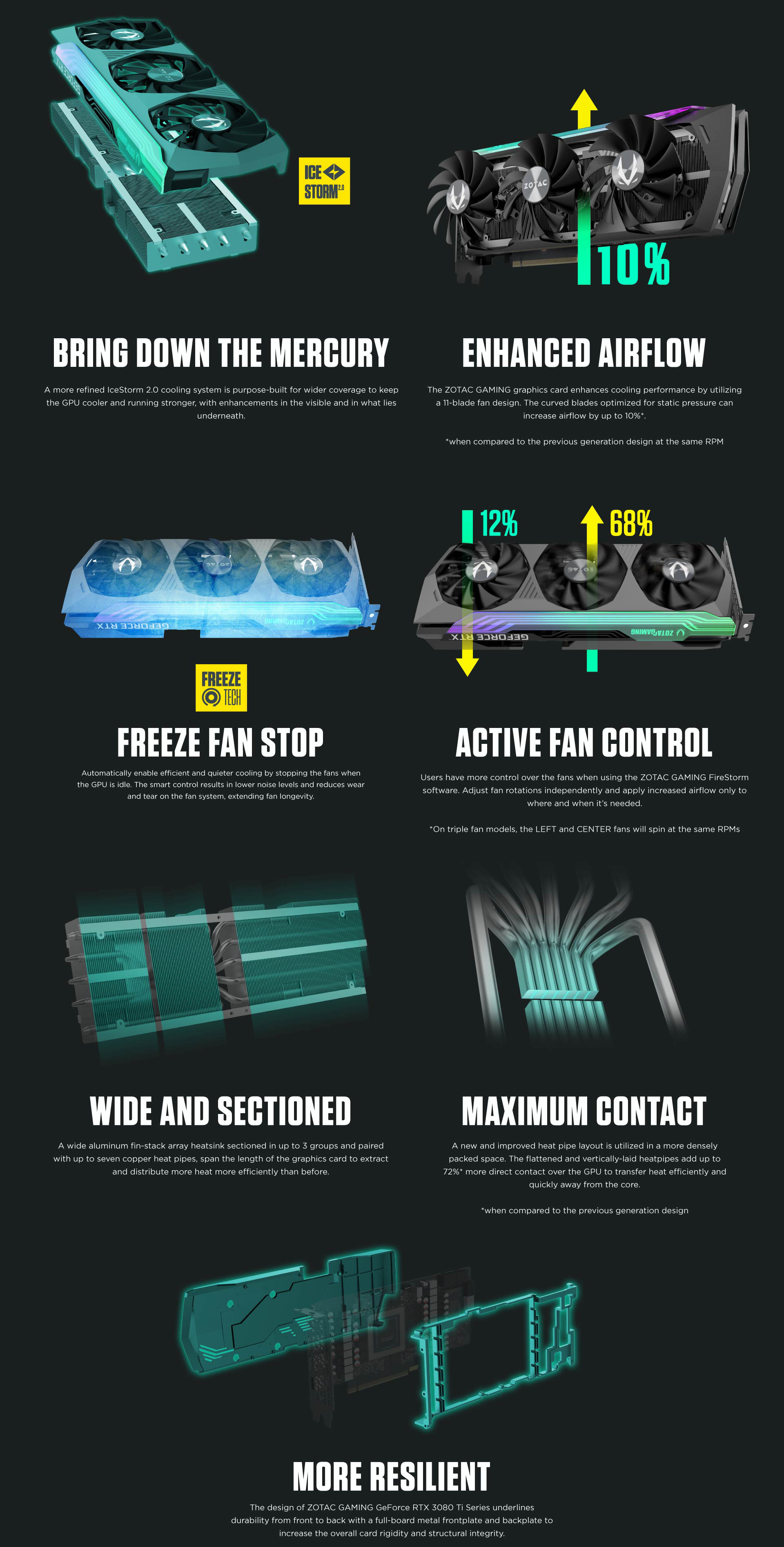 Card Màn Hình ZOTAC GAMING GeForce RTX 3080 Ti AMP Holo có thiể kế cân bằng giữa khả năng làm mát, âm thanh và tính thẩm mỹ mang đến đồ họa chơi game cực kỳ trung thực.