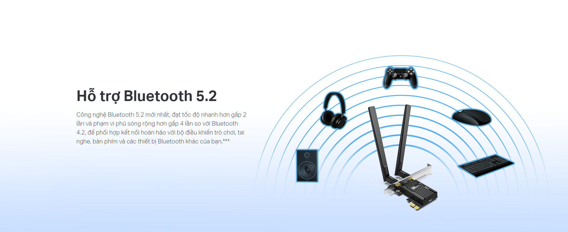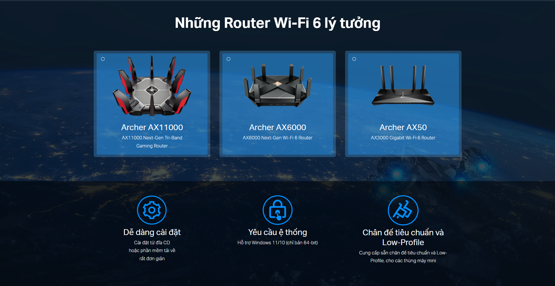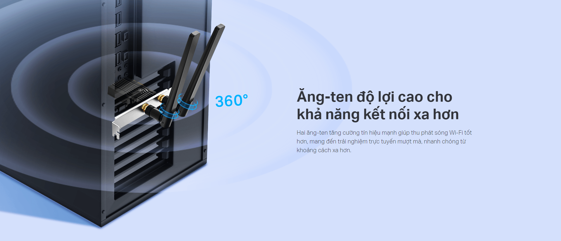| Sản phẩm bao gồm | Archer TX55E Two High-Gain Antennas Low-Profile Bracket Standard Bluetooth Header Cable Quick Installation Guide Resource CD |