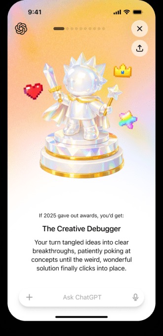 Sau thành công của Spotify Wrapped trong việc tạo dấu ấn cá nhân cho người dùng, ChatGPT cũng nhanh chóng bắt kịp xu hướng khi ra mắt bản tóm tắt hoạt động hằng năm. Tính năng mới này không chỉ mang tính giải trí mà còn giúp người dùng hiểu rõ hơn thói quen, nhu cầu và hiệu quả sử dụng AI của mình. Đây được xem là một điểm nhấn đáng chú ý trong chiến lược phát triển trải nghiệm người dùng của ChatGPT.
