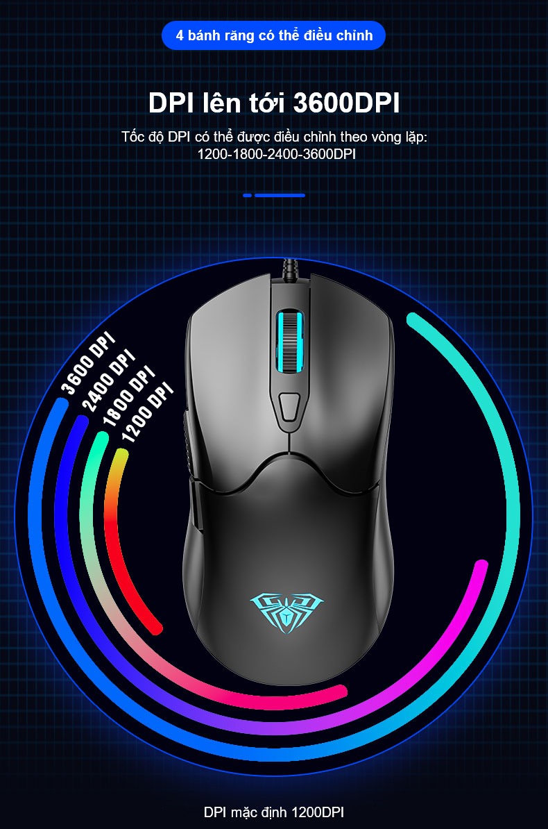 4 cấp độ DPI có thể điều chỉnh thông qua nút tích hợp trên thân chuột AULA S13