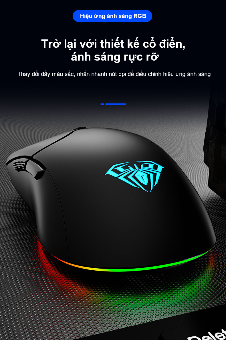 Rainbow trong tiếng Việt có nghĩa là “cầu vồng”. Đây là một loại đèn LED có 7 màu, có thể đổi màu linh hoạt theo hiệu ứng âm thanh. Ngoài ra, LED Rainbow là một hệ thống thay đổi màu sắc theo lập trình hoặc dùng điều khiển. Một chiếc chuột có hỗ trợ LED Rainbow bắt mắt sẽ làm tăng thêm cá tính, tạo phong cách chuyên nghiệp hơn cho người dùng. AULA S13 với hiệu ứng đèn nền đổi màu liên tục ở vị trí logo và con lăn khiến chuột trở nên sống động và nổi bật. Bạn có thể nhấn nhanh nút DPI trên thân chuột để điều chỉnh hiệu ứng ánh sáng.