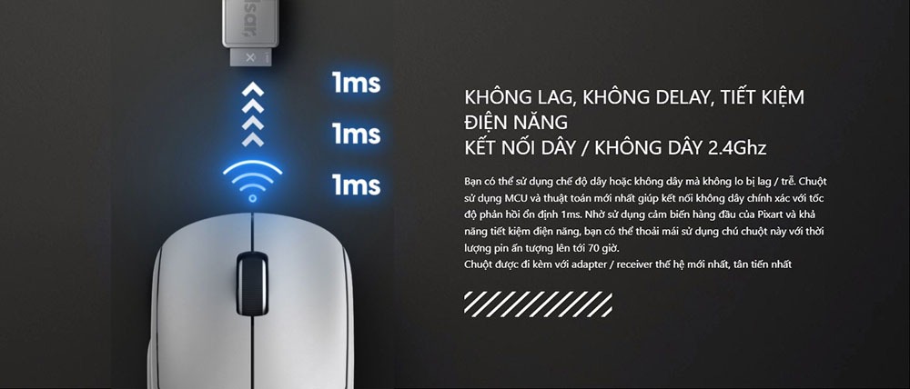 | Kết nối | Dây USB-C / Không dây 2.4Ghz Pin với thời lượng lên tới 70 giờ hoạt động |