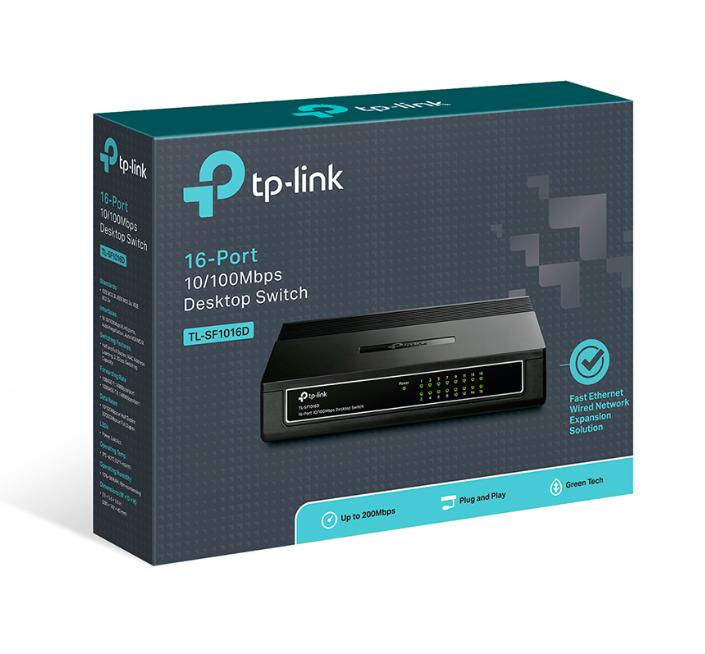 Bộ chia tín hiệu Ethernet tốc độ cao TL-SF1016D được trang bị 16 cổng RJ45 Auto-Negotiation 10/100Mbps. Tất cả các cổng này đều được hỗ trợ chức năng Auto MDI/MDIX , qua đó có thể loại bỏ được vấn đề sử dụng cáp chéo hoặc các cổng Uplink. Nổi bật với thiết kế ngõ chia tín hiệu không bị chặn, thiết bị TL-SF1016D có thể chuyển tiếp và lọc các gói tin với lưu lượng truyền tải có tốc độ tối đa. Với khung Jumbo 10K, việc truyền tải các tập tin lớn sẽ được cải thiện đáng kể. Cuối cùng là tính năng kiểm soát lưu lượng IEEE 802.3x trong chế độ Full Duplex và áp suất đối với chế độ Half Duplex sẽ giúp loại bỏ khả năng tắc nghẽn lưu lượng và làm cho thiết bị TL-SF1016D hoạt động trơn tru hơn.