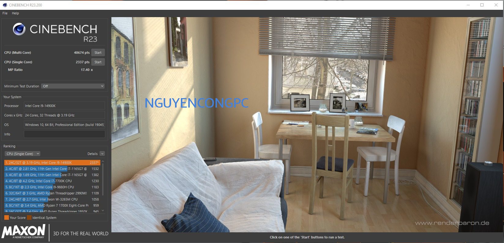 Chạy thử nghiệm trên phần mền Cinebench 2024
