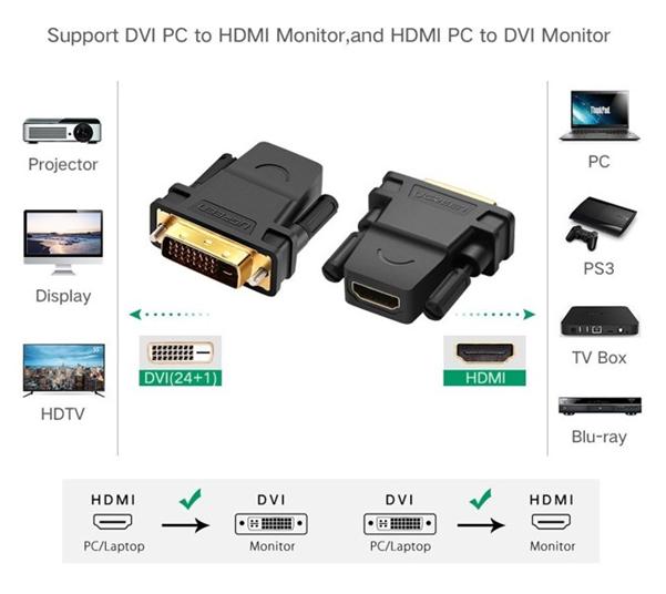 - Đầu chuyển đổi DVI to HDMI Ugreen 20124 hỗ trợ chuyển giao không nén video độ nét cao